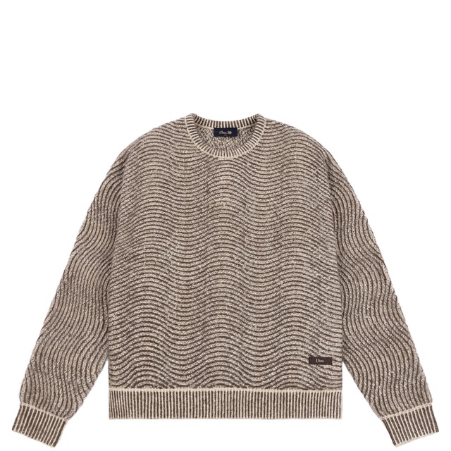 167cm Mサイズ 47% Acrylic 30% Nylon 15% Wool 8% Mohair Horizontal weaved wave pattern Dropped shoulders Woven label at bottom left hem Ribbed collar, cuffs & hem Model is 5'5" and wears size Xsmall