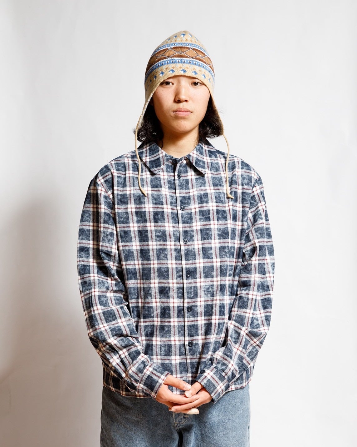 DIME / Plaid Flannel Shirt - Bleached Navy
