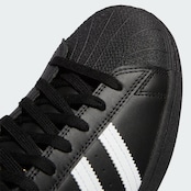 オリジナルのハードコートの美学とスケートボーディング用のADVテクノロジーを組み合わせた、スーパースター ADV。摩耗しやすいエリアをアディタフ(Adtifuff)で補強した構造で、ダブルステッチを施したアイステイシームで耐久性を高め、改良されたシュータン構造と成型の合成繊維(EVA)ソックライナーで快適性と衝撃吸収性を実現したスーパースター ADV。