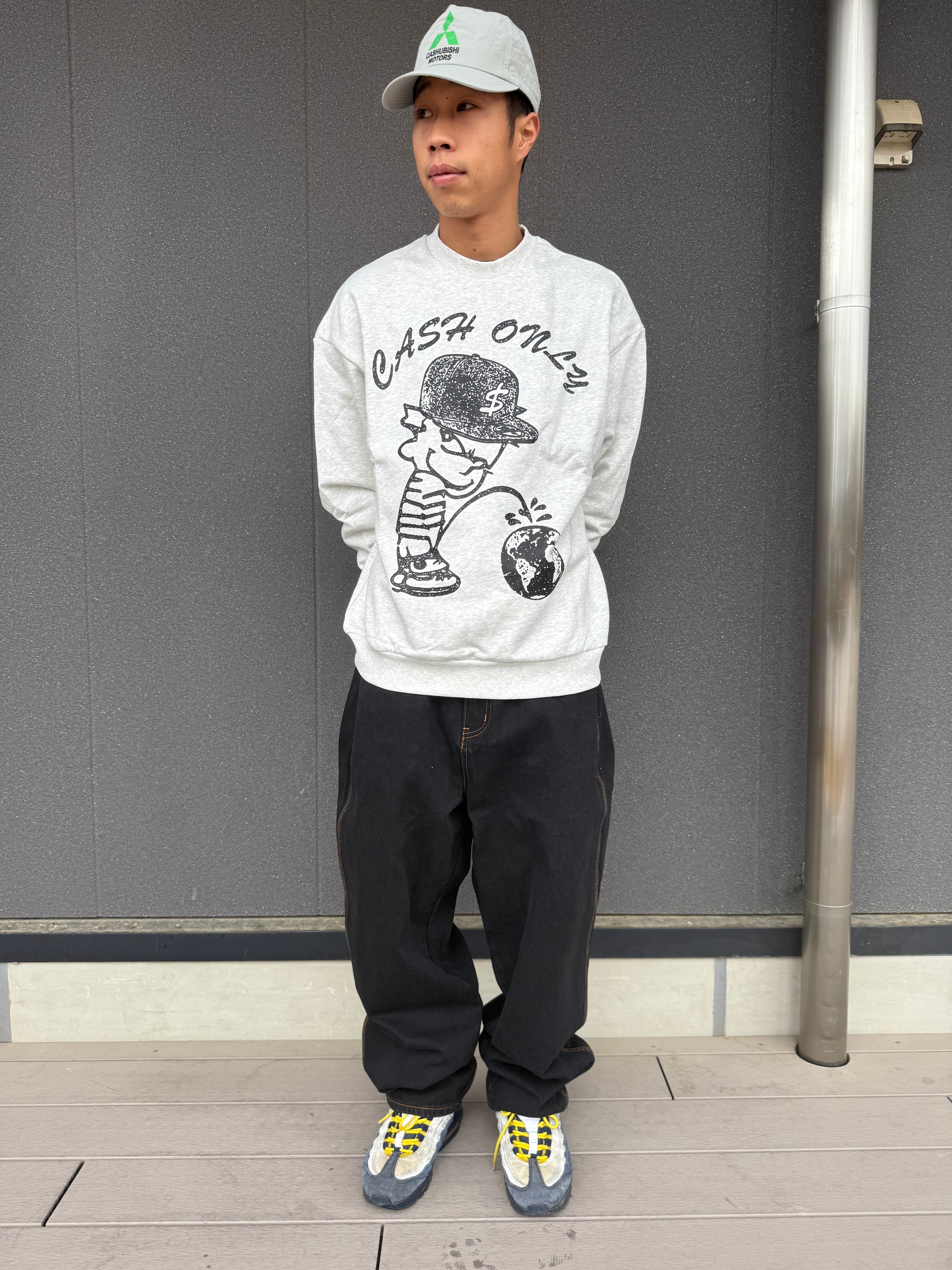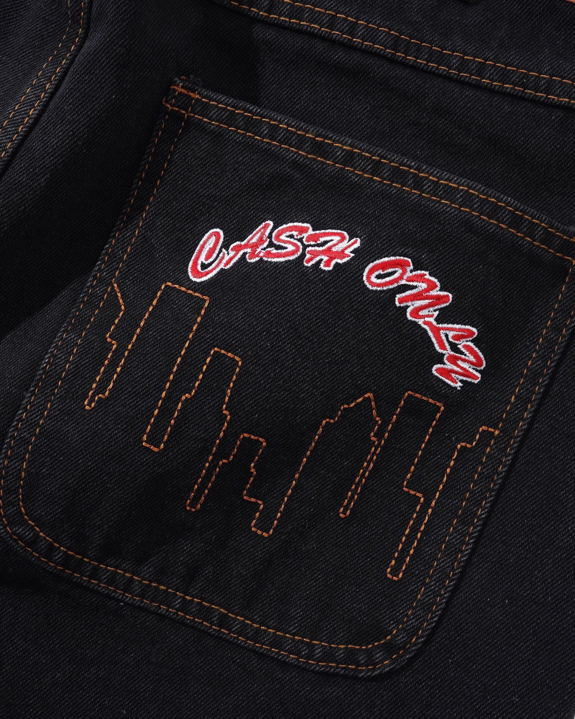 CASH ONLY / Logo Baggy Denim Jeans / Washed Black