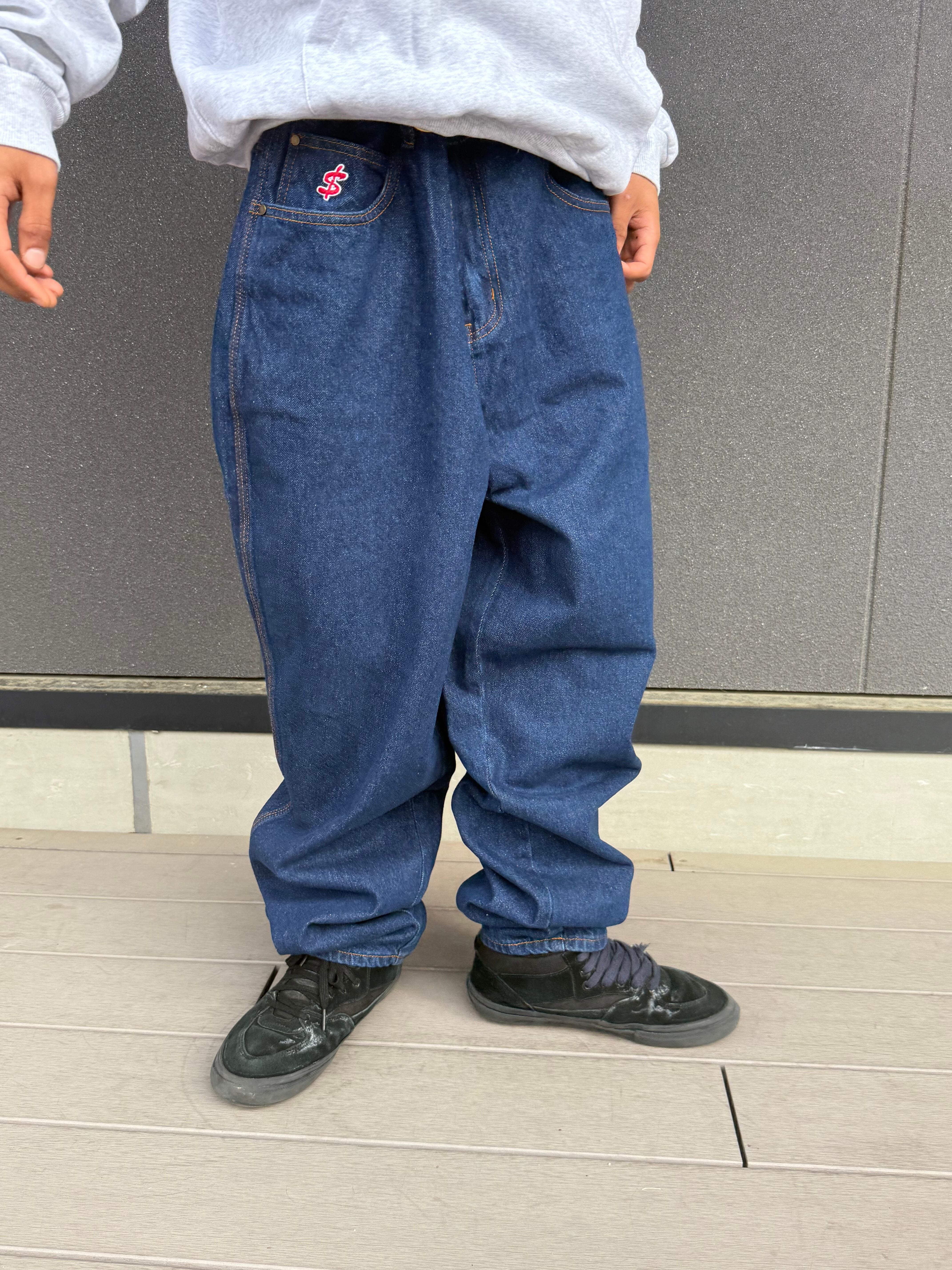CASH ONLY / Logo Baggy Denim Jeans / Raw Indigo / 32inch
