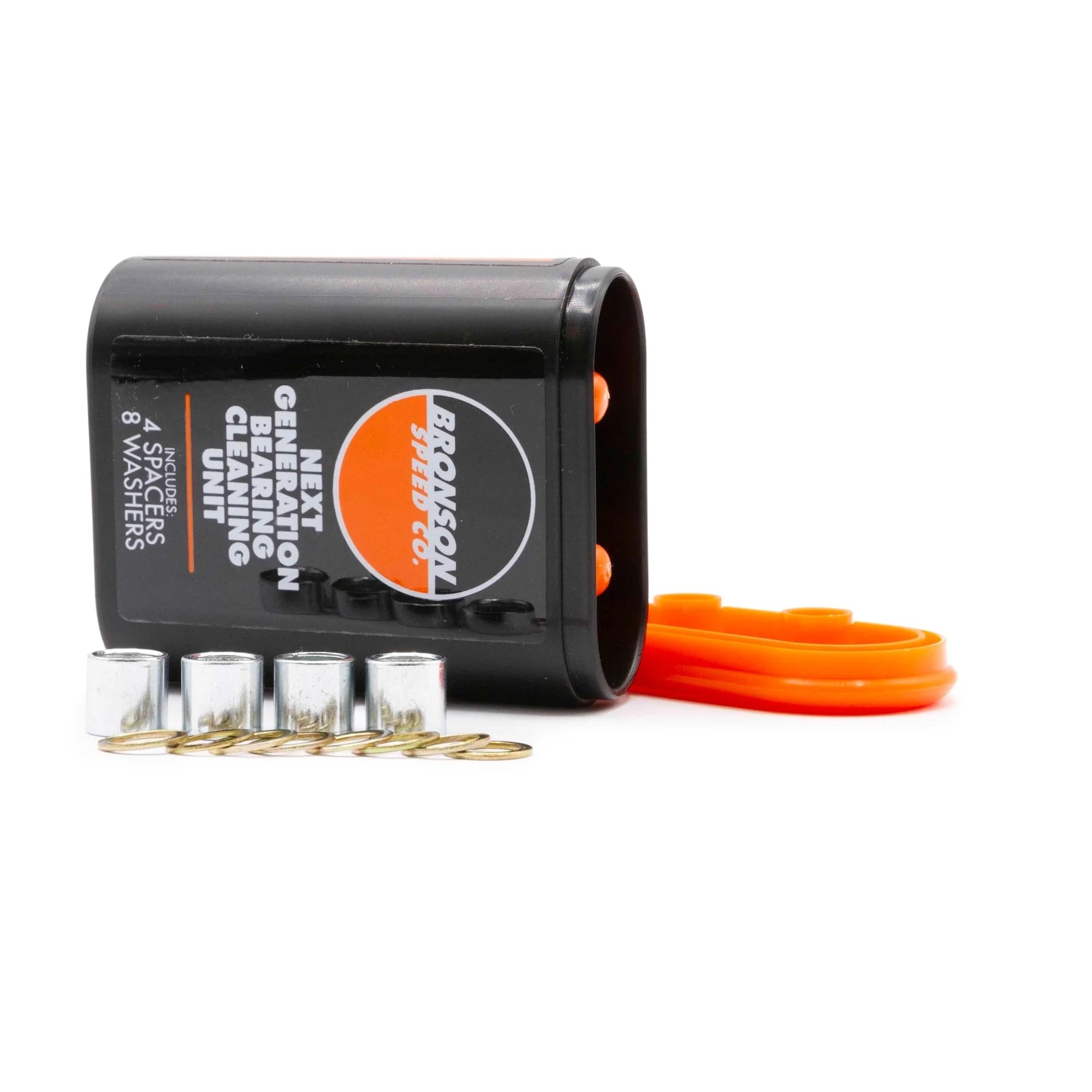 中にある二つのオレンジの棒にベアリングと付属のスぺーサーを交互に差していき